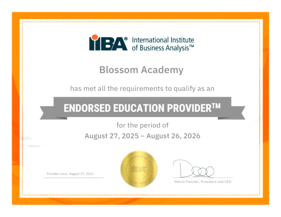 Get fully prepared to master the IIBA® Certified Business Data Analytics (CBDA) exam with Blossom Pro’s real‑world focused training. This comprehensive program covers all six CBDA domains including identifying research questions, sourcing and analyzing data, interpreting results, and using analytical insights to guide strategic business decisions. With practical exercises, structured review, mock exams, and expert support, you’ll gain the knowledge and confidence you need to succeed.